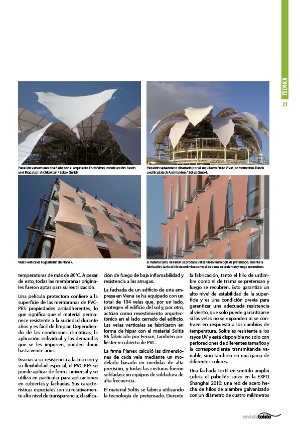 Velas verticales Hyparform de Planex. El material Soltis de Ferrari se produce utilizando la tecnología de pretensado: durante la