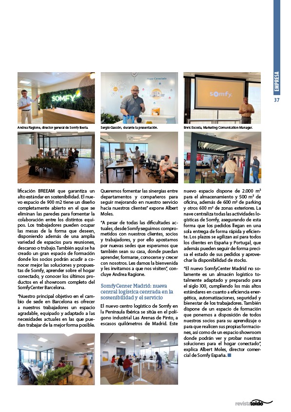 Andrea Ragione, director general de Somfy Iberia. Sergio Gascón, durante la presentación. Enric Escoda, Marketing Comunication Manager.