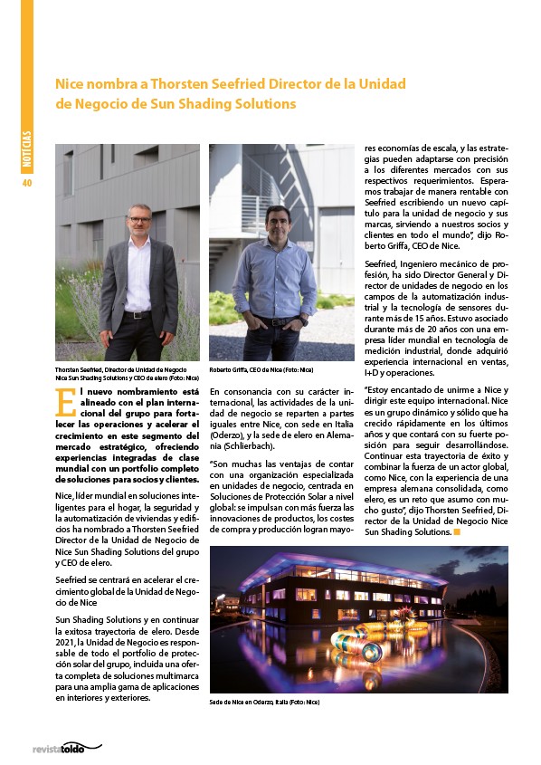 Nice Sun Shading Solutions y CEO de elero (Foto: Nice)