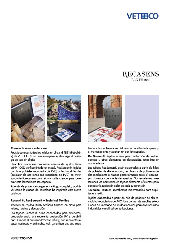 ® (100% acrílico tintado en masa), RecScreen® (tejidos