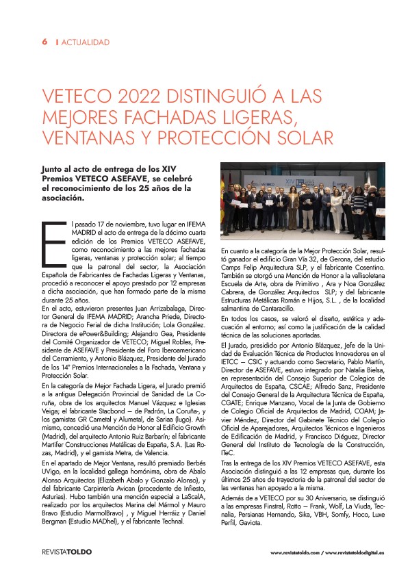 de los 14º Premios Internacionales a la Fachada, Ventana y
