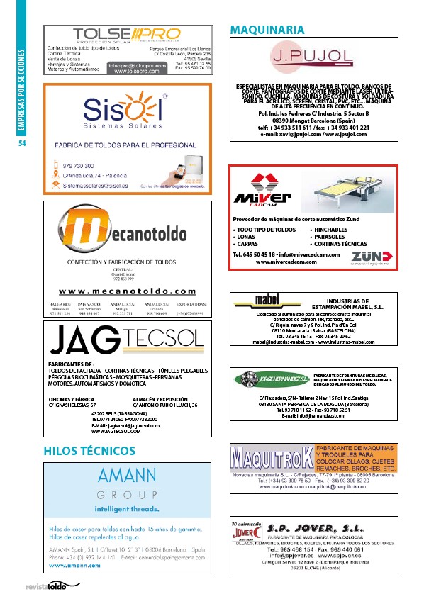 ESPECIALISTAS EN MAQUINARIA PARA EL TOLDO, BANCOS DE